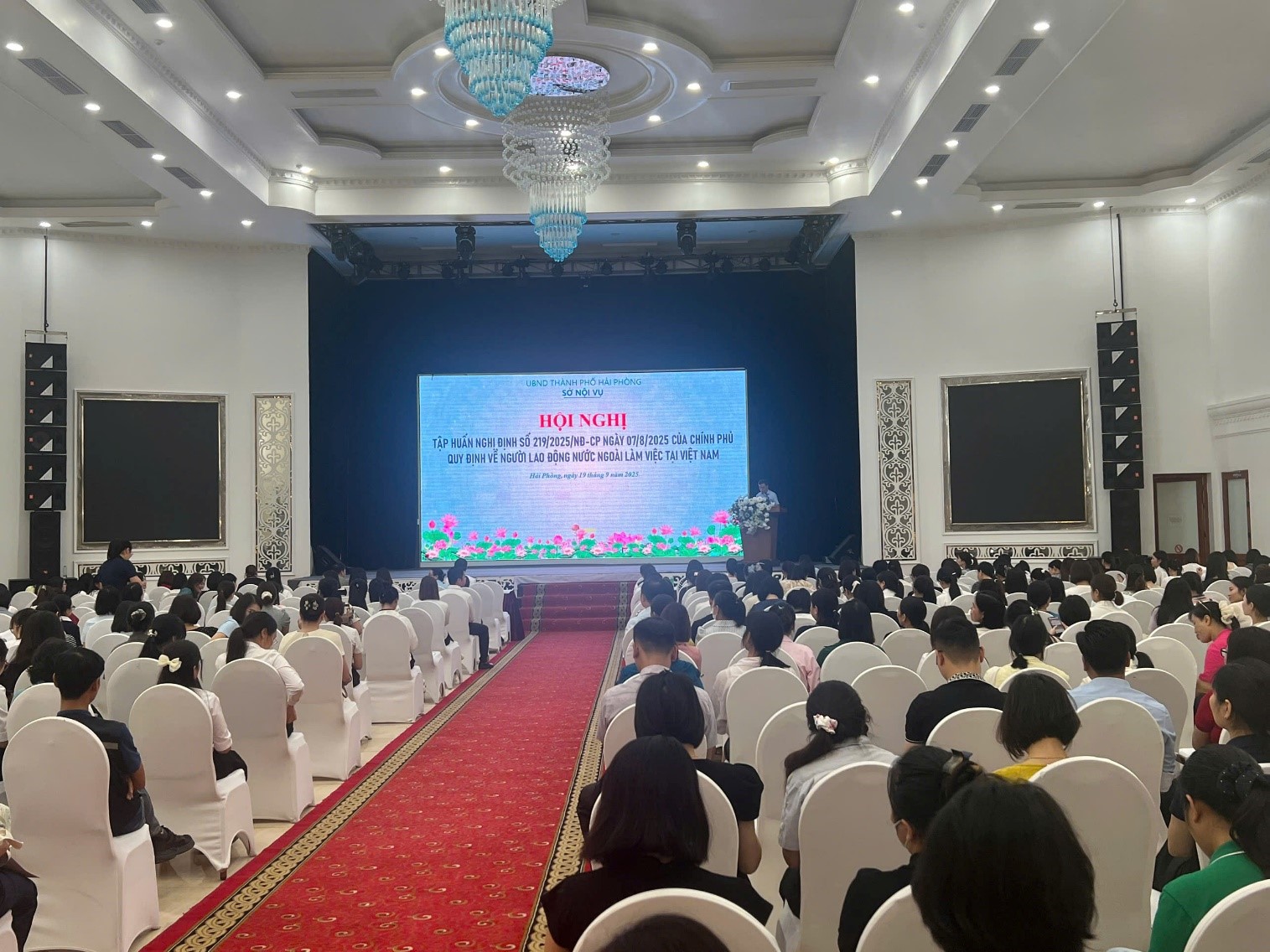 Hội nghị diễn ra thành công tốt đẹp với sự tham dự của trên 500 người là đại diện lãnh đạo, cán bộ phụ trách công tác nhân sự, cán bộ trực tiếp liên quan đến người lao động nước ngoài của các doanh nghiệp, cơ quan, tổ chức, cá nhân có sử dụng lao động nước ngoài trên địa bàn khu vực phía Tây thành phố Hải Phòng.